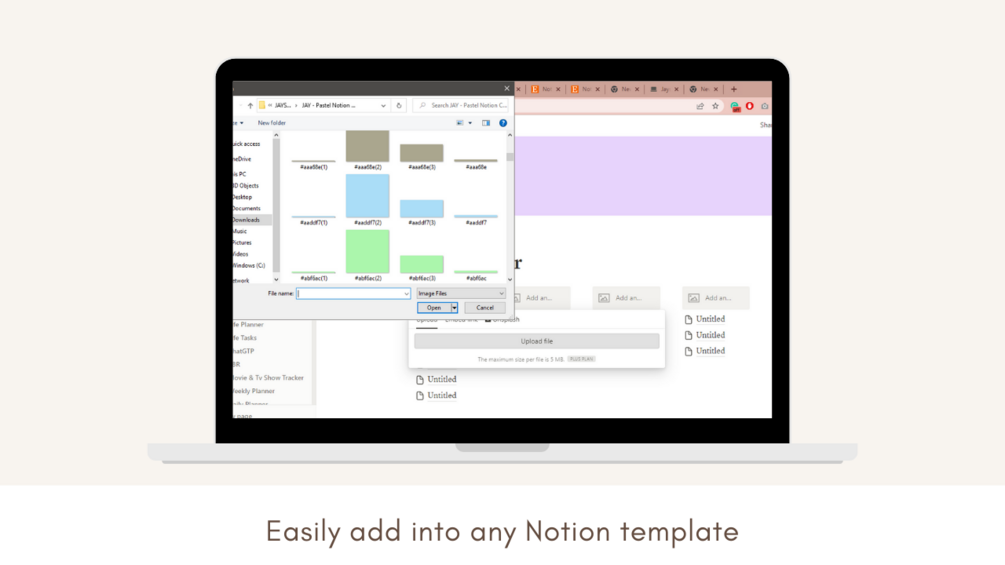 This customization bundle for Notion includes all you need to elevate your dashboard. This bundle is perfect if you need to get organized and get things done. This Bundle includes 200 Notion Customization Files (covers, thin dividers, thick dividers, and gallery covers) in PNG format that you can download and use in your Notion dashboard.
